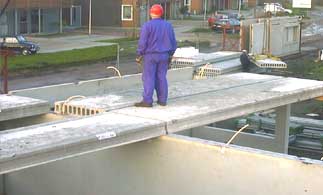 Montage einer vorgespannten EUBAU Hohlraumdecke.
