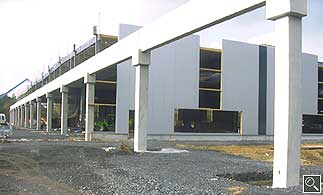 Sichtbetonfertigteilstützen werden für das Tragwerk